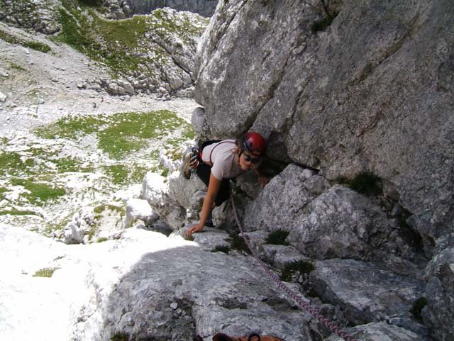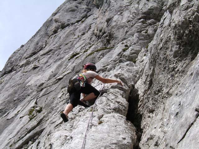 Ausstieg ist sehr lohnend und mit einem glatten 4er auch nicht allzu schwer. Dieser kann aber rechts in leichterem