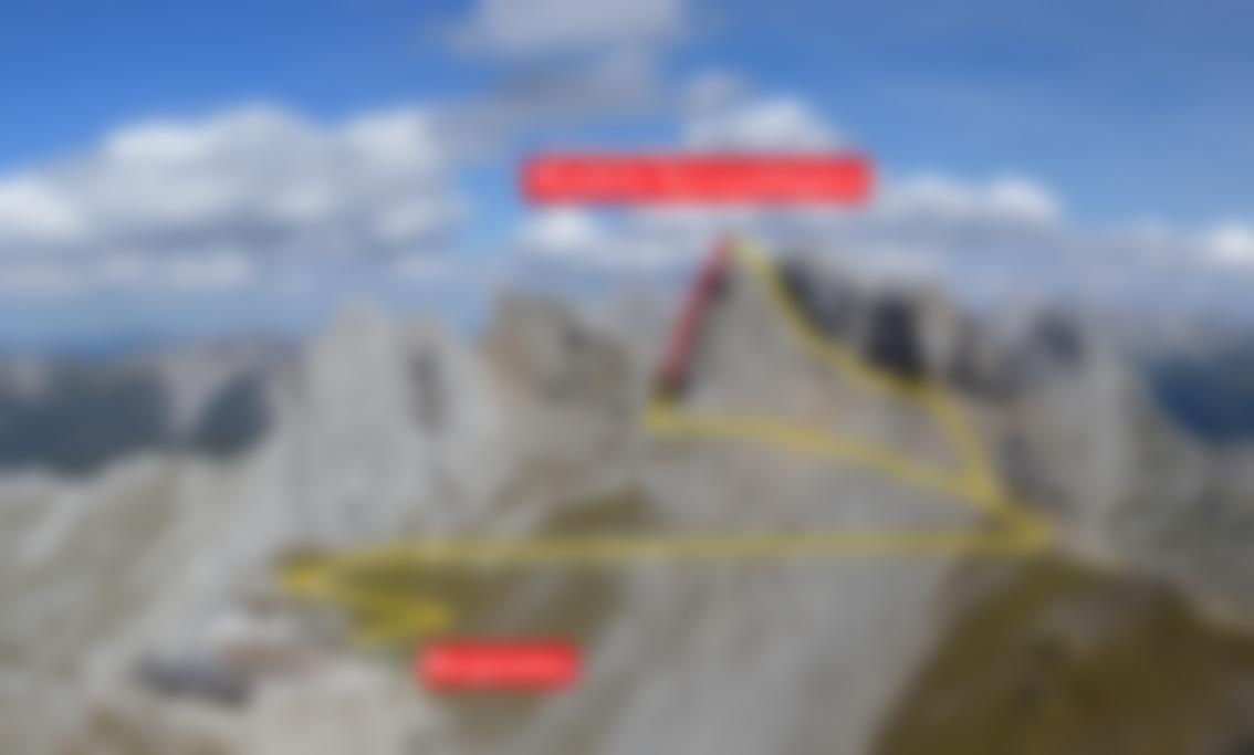 Von der Seilbahn in Richtung Karwendelspizte, dann links unterhalb der Felsen zur oberen Dammkarscharte.