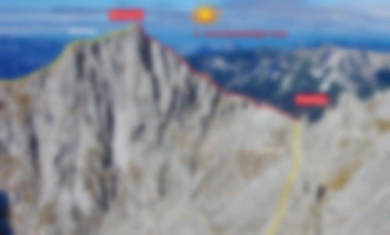 Siehe Topo. Man hält sich meist im Bereich des Grates.