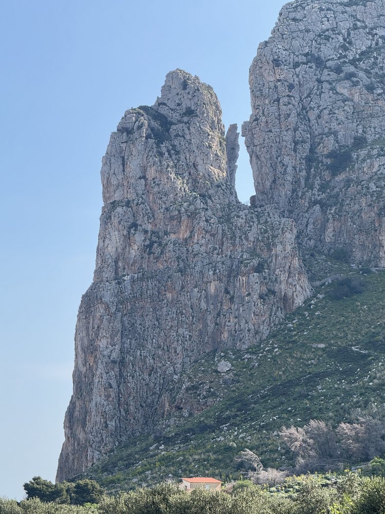 Auf der Umfahrungsstraße von San Vito Lo Capo (Strada Communale Mondello) bis kurz unter den Berg, dort zweigt eine kleinere Sandstraße ab. Hier gute Parkmöglichkeiten. Die Sandstraße folgend bis man nach ein paar Häusern, eine Zufahrt abzweigt. Dieser folgen bis auf einen deutlichen Steig (Steinmänner), bis zum Einstieg.