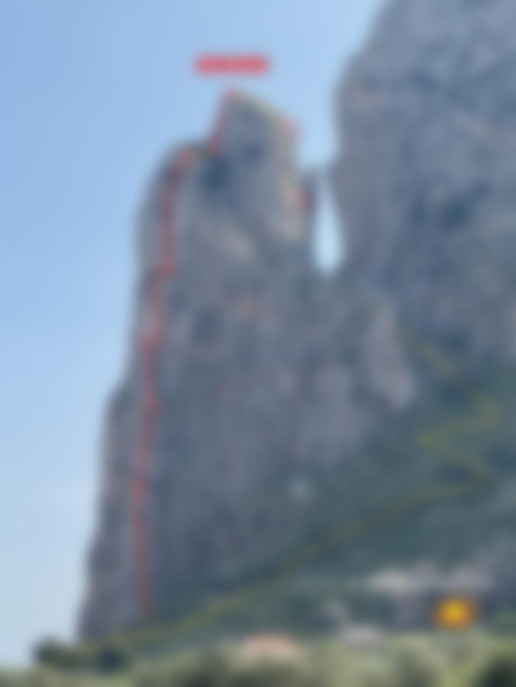 Pizzo Monaco, Route verläuft leicht rechts der linken Kante (Weiße Linie), Foto: Stephan Klotz