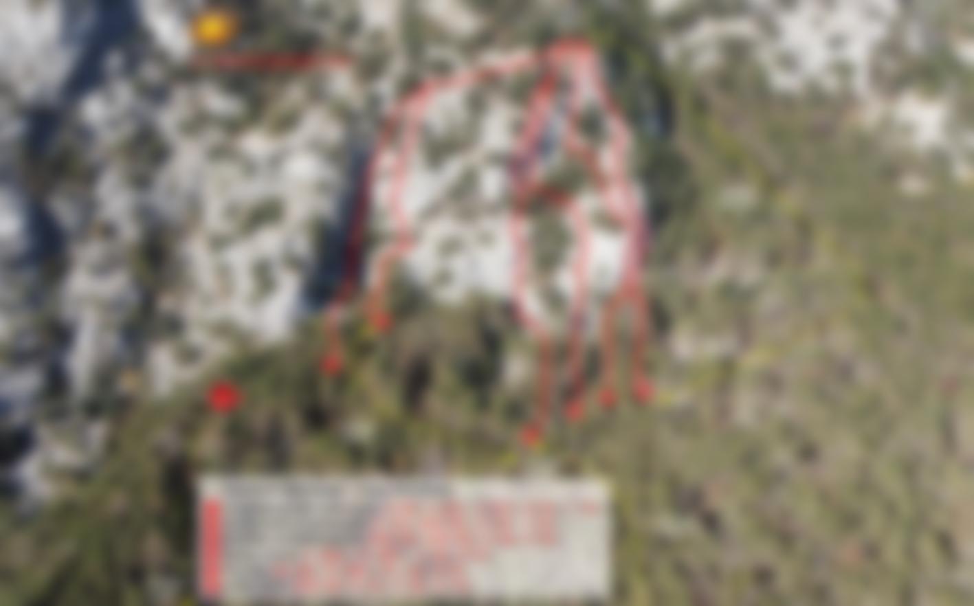 Die beiden linken Routen sind alpin (Normalhaken, Schlingen, wenig Bohrhaken) abgesichert. Ab Sceriffo bis Little John gut mit Bohrhaken abgesichert.