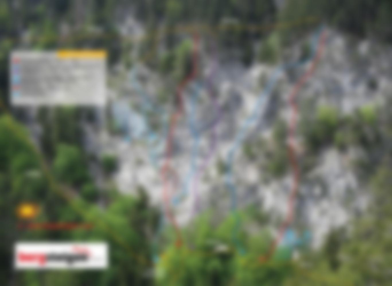 Diesen Tipp bekamen wir von einem Freund der meinte, diese Tour dürfte bei uns nicht fehlen. Und wirklich, dass was die Erstbegeher da "ausgegraben" haben kann sich sehen lassen. Eine schöne Route, bei der das Klettern zur Freude wird, zieht in 5 Seillängen die Plattenwand hoch. Schon am Einstieg (ist mit roter Farbe angeschrieben) lässt sich abschätzen, was einen erwartet. Die erste Seillänge mit den vielen Sanduhren sieht fantastisch aus. Und das Ganze ist nur 4+ schwer, man glaubt es kaum. Der Rest, die folgende Verschneidung und die Plattenseillängen, stehen dem um nichts nach. Wie auch für die anderen Routen in diesem Bereich gilt die erhöhte Steinschlaggefahr, also unbedingt Helm mitnehmen (und auch aufsetzen, vor allem im Einstiegsbereich).