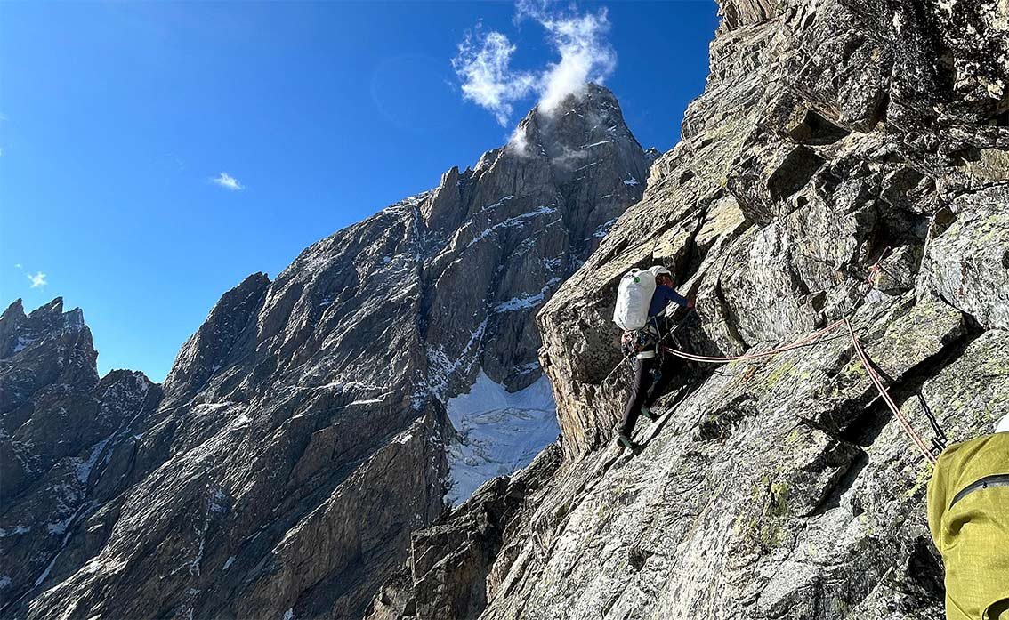24.09.2025, Mittwoch: Start zum Sonnenaufgang am Einstieg, Mitnahme von Biwakmaterial, Routenfindung durch den Pfeiler und anschließend Biwak ca.70m unter Pfeilerkopf