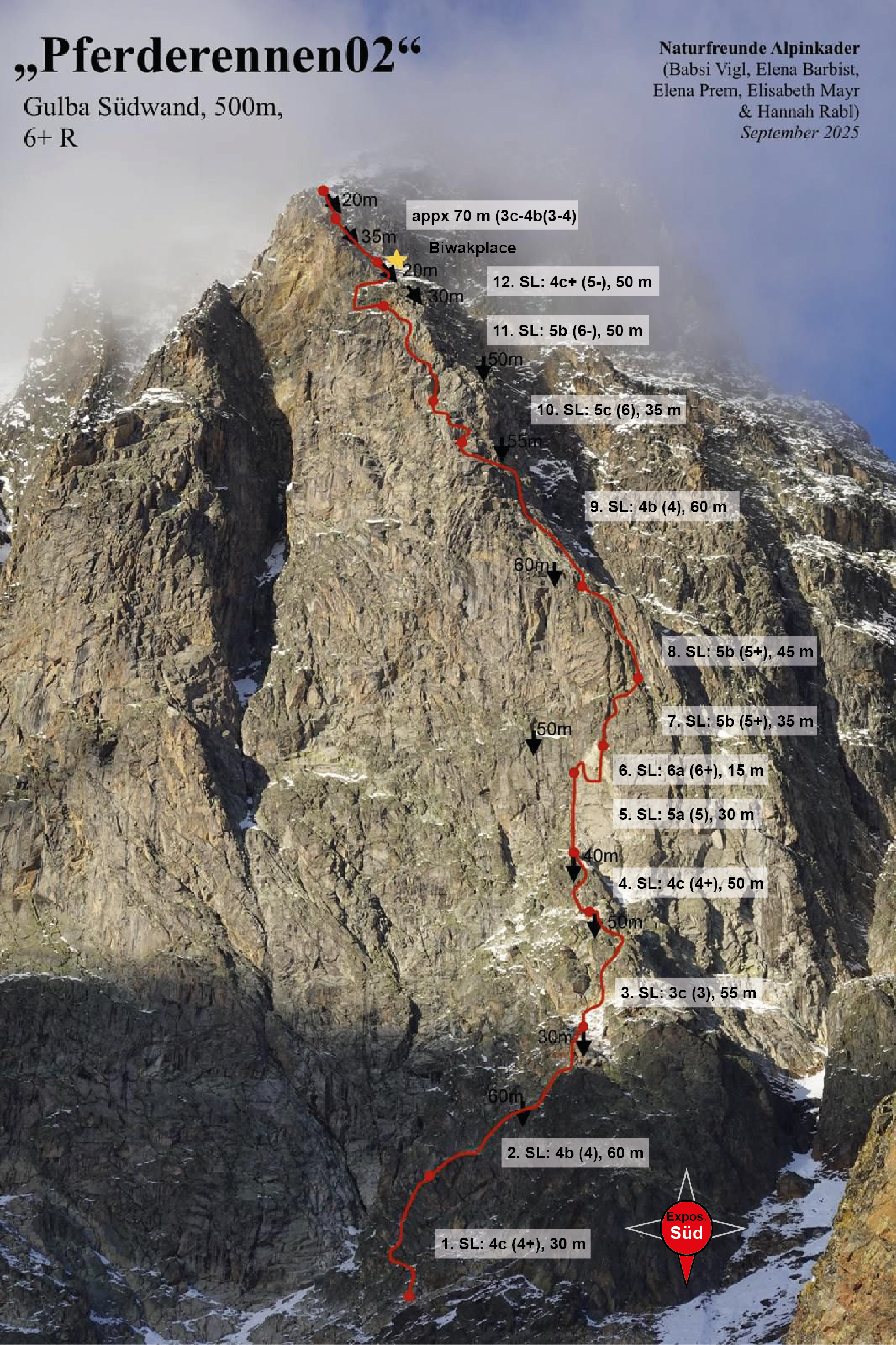 Abenteuerkletterei am Gulba. Eine Erstbegehung im Rahmen der Abschlussexpedition des Naturfreunde Alpinkaders 2025.