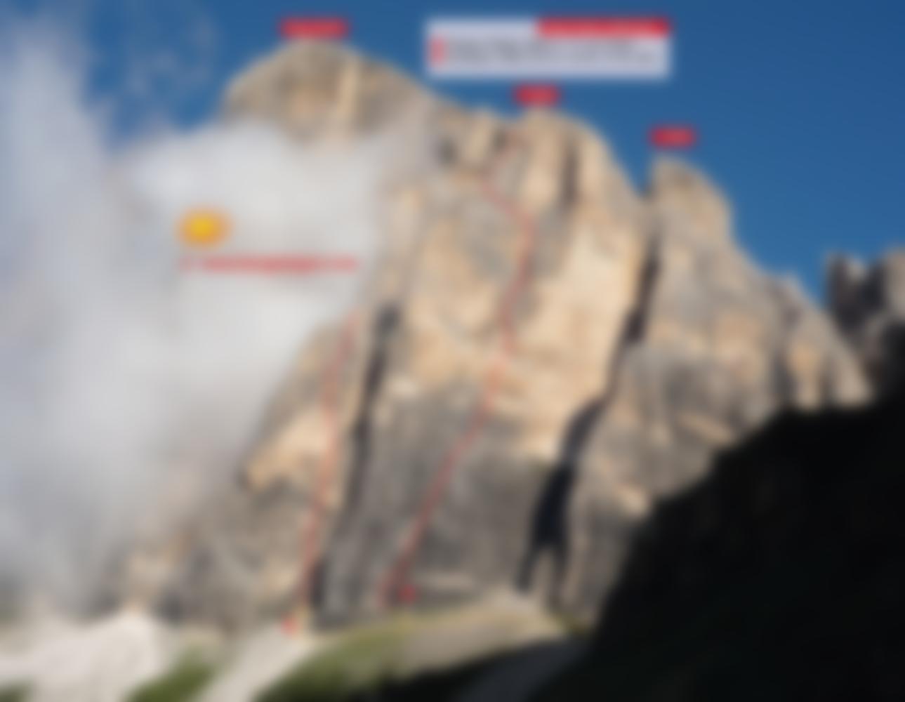 Der Extremklassiker an der Tofana bzw. in den Dolomiten überhaupt. Die Tour hat sehr eindrucksvolle Passagen und bietet fast durchgehend tolle Kletterei an bestem Fels. Die Kletterei ist teilweise sehr athletisch und über weite Strecken sehr luftig. Nach dem zweiten Band wartet ein etwas unangenehmer Kamin - der sog. "Maultierrücken" - auf die Begeher.