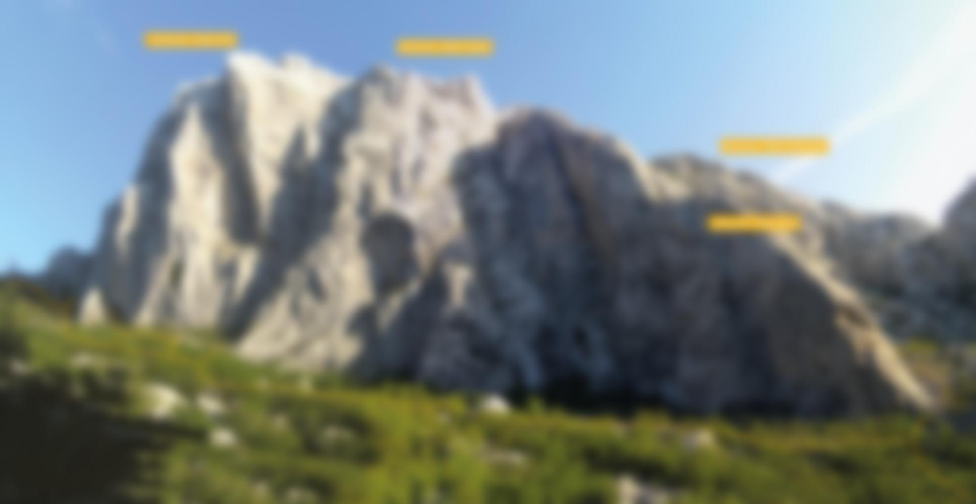 Die „rumeni strah“ war einst eine A4- Technotour durch den markanten gelben linken Wandteil des Anica Kuk. Mittlerweile frei geklettert und an den Ständen mit bolts eingerichtet, verlangt die Tour auch eine gehörige Portion Moral. Bis auf die Seillängen 3-5 (da gibt’s gute bolts als Zwischensicherungen) sind alle anderen Längen nichts für schwache Nerven: speziell die oberen beiden 6a- Längen haben außer alten NH und wackeligen Holzkeilen nichts solides zu bieten. Ein Satz friends und lange Sanduhrschlingen sind dort Gold wert!