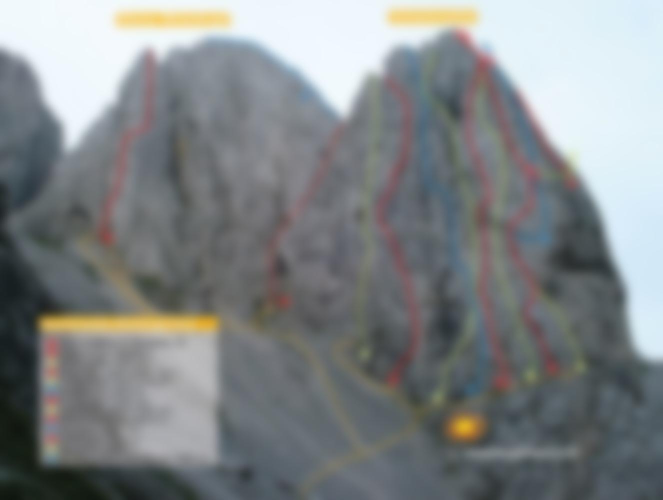Insgesamt hängt die ganze Route / Wand vom ersten Meter bis zum letzten Meter auf einem schmalen Gratturm leicht über ! Die 3. u. 4. sl. sind am bösartigsten !