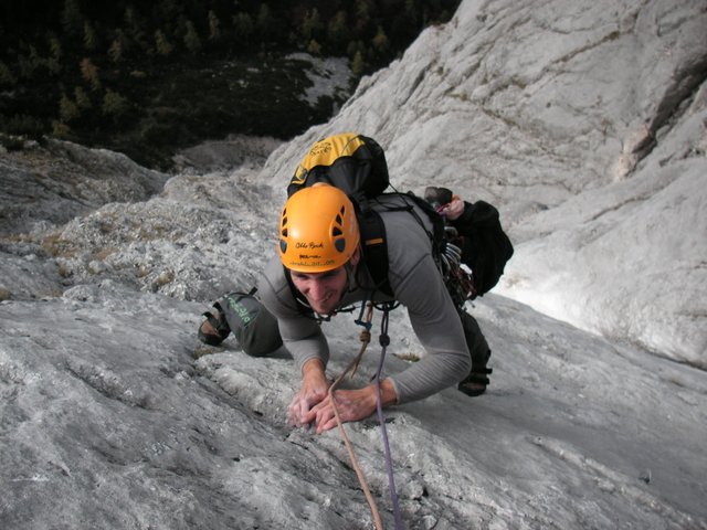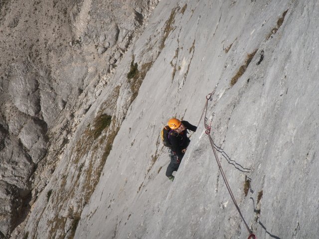 Gesamt ist in der Wand auf Steinschlag zu achten – die ersten beiden Zustiegsseillängen sind etwas brüchig !!