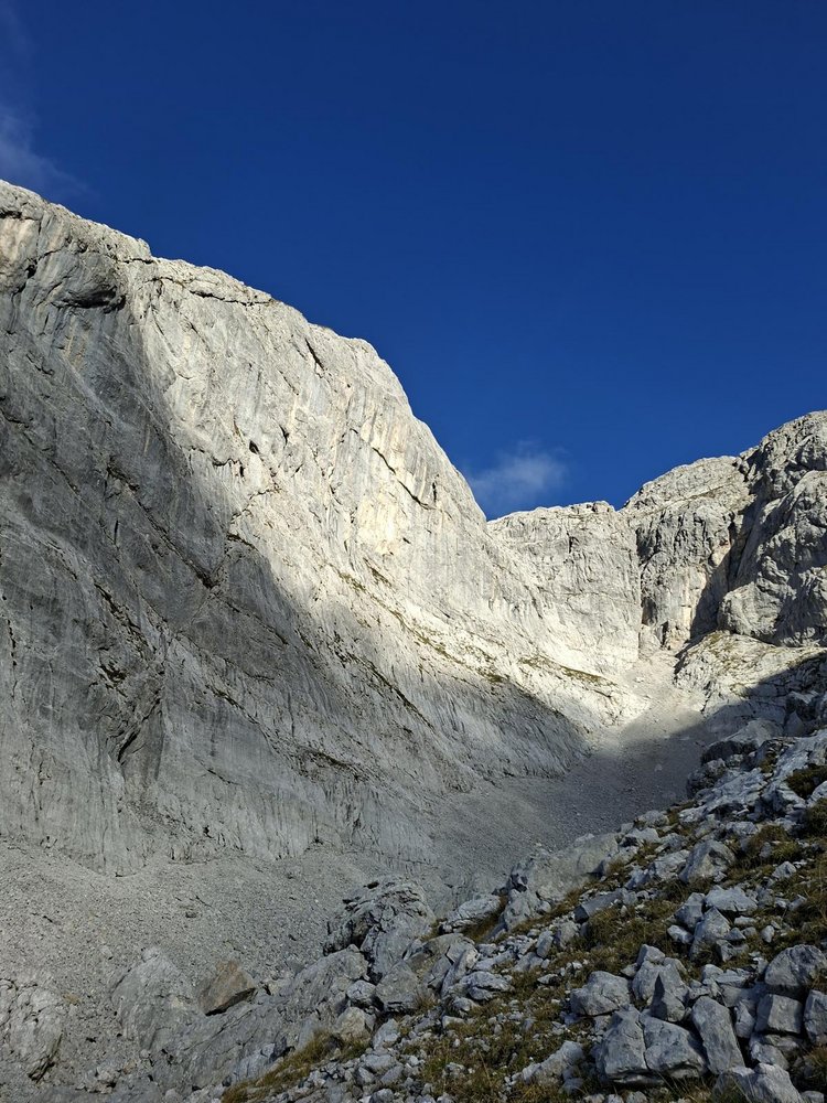 Alpine Sportklettertour in herrlicher Umgebung. Die Rumpelkammer ist ein wirklich schöner Fleck Erde. Felsqualität teilweise sehr gut, teilweise splittrig.