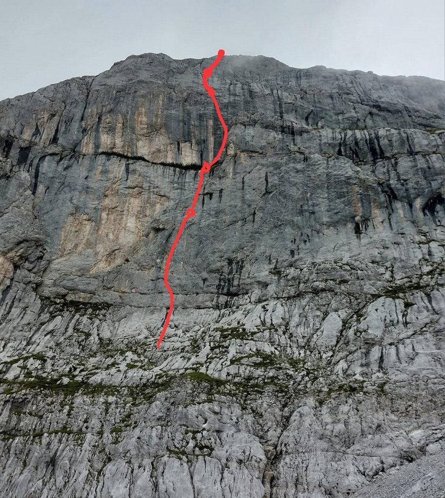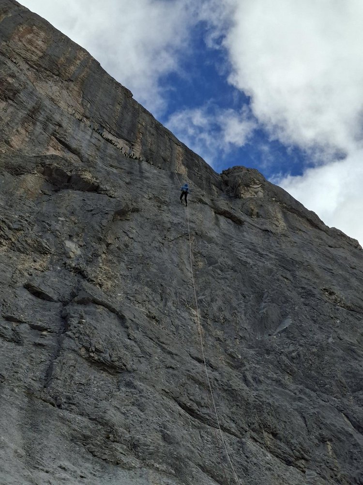 Nach unseren Recherchen die erste Tour durch die Wand. Die Wand hätte auch noch Platz für weitere kurze/schwere Touren durch den steilen Mittelteil.