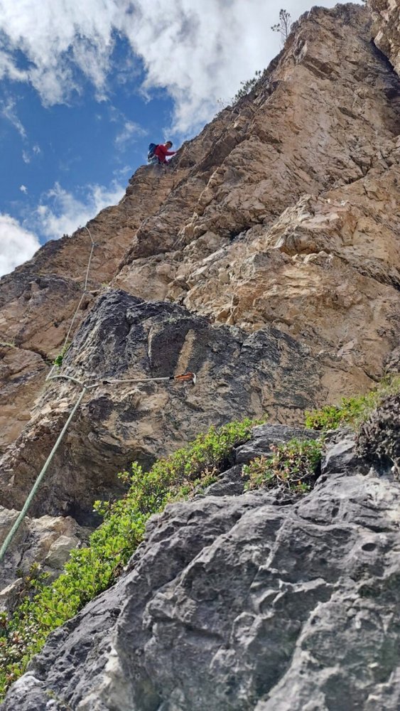 Alpine Sportkletterroute mit sehr guter Bohrhakenabsicherung und eingerichteten Standplätzen. Teilweise noch etwas brüchige Passagen im Schrofengelände. Sonst allerdings gute Felsqualität. Nach der 5. Seillänge (Querung) kann zur benachbarten Via „Fucsia“ ausgewichen werden.