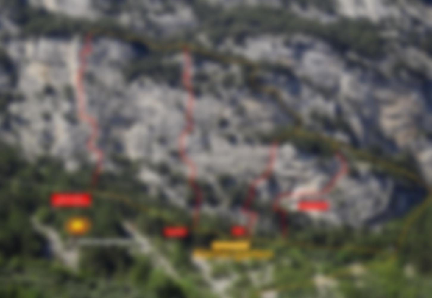 Achtung: In der 7. Seillänge sind mehrere Quadratmeter Fels ausgebrochen, die zum Teil noch in der Route liegen. Zwischen der zweiten und dritten Seillänge fehlt der Standplatz, der Baum wurde durch den Felssturz bis zum Wandfuß mitgerissen. (Ein Stand ist am ersten Haken der 3. Seillänge + SU möglich.) In der 3. Seillänge (ca. 3) sind mehrere Bohrhaken beschädigt und können nicht regulär verwendet werden. Die Tour ist zum aktuellen Zeitpunkt (August 2025) sehr unangenehm zu klettern und wirklich gefährlich.