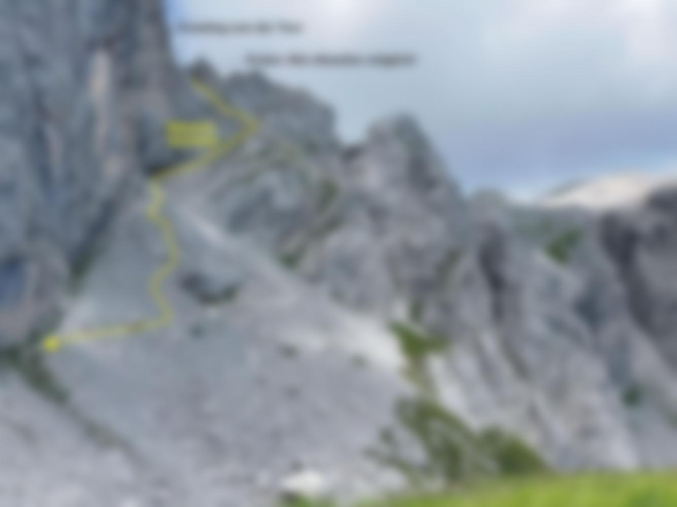a.) Aus dem Lesachtal: Vom Parkplatz (ca. 1620m) unter der Ingridhütte (1646m) an dieser vorbei. Weiter in südlicher Richtung, vorbei am HWH (Hochweißsteinhaus, 1867m) hinauf zum Bladner Joch (2127m). Zunächst leicht absteigend quert man den Graskessel nach Süden, wobei man die Wand schon immer im Blick hat. Entlang des Wandfuss steigt man über Schotter zum markanten Plattenpanzer auf, wobei ein etwas verblasster roter Punkt in einigen Metern Höhe den Einstieg weist.