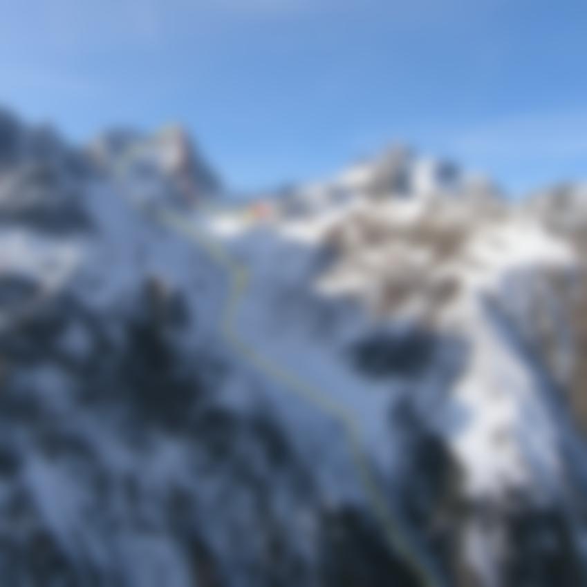 Siehe Topo. Einstieg bis Gipfel ca. 700 Hm! Die schweren Kletterpassagen sind gleich beim Einstieg und an der mittleren Querung zu finden.