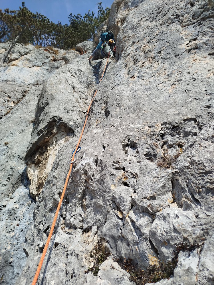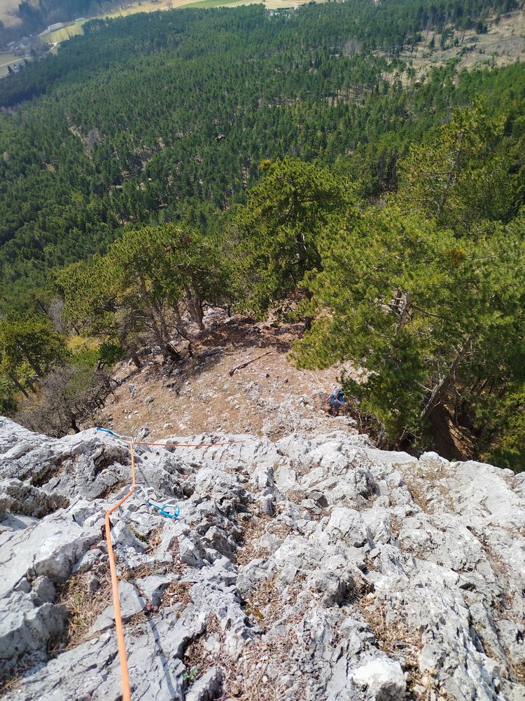Zwar nicht besonders lang, aber dennoch einer der besten Hohe Wand 4er. Die Route wurde von den Bergführern der Alpinschule Peilstein 2009 saniert und ist sehr gut mit Klebehaken abgesichert. Perfekte Tour für Inversionswetterlagen im Herbst. Wenn unten der Schnee und Hochnebel ruht, klettert man hier oben im T-Shirt. Im Sommer daher sehr heiß, außer der Südwind bläst. :-)