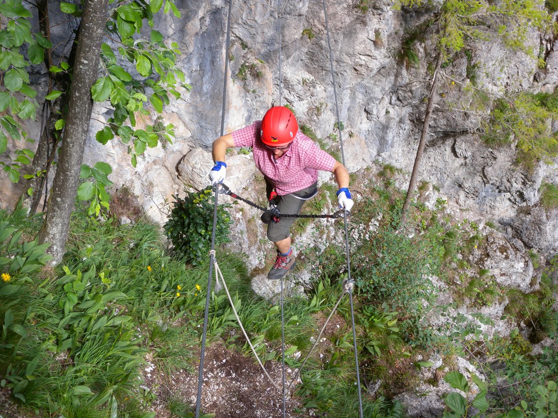Gut mit Stahlseil abgesichert - teilweise machen Holzbalken einen etwas wackeligen Eindruck.