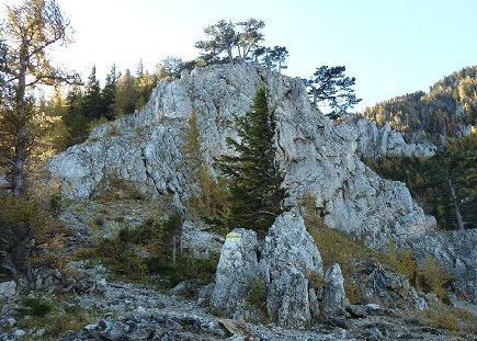 Vom Parkplatz etwa 150 m die Hauptstraße ins Höllental hinein zu ein paar Häusern. Dann bei einem Wegweiser links auf gelb markierten Weg abzweigen. Zuerst steiler Wald, dann immer mehr felsiges Gelände. Stätig in Serpentinen, gut markiert, mit teils viel Geröll hinauf.