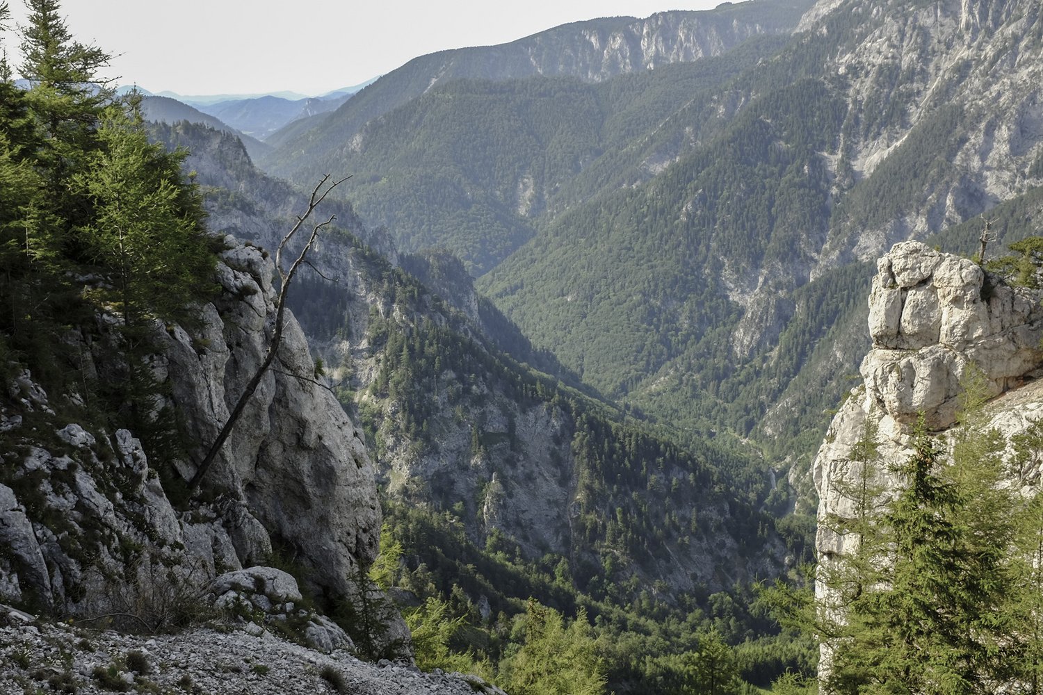 Landschaftlich atemberaubender Anstieg/Abstieg auf das/vom Raxplateau. Abschnittsweise kann man von latenter Ausgesetztheit sprechen. Unglaubliche Tiefblicke ins Höllental, wunderbare Sicht auf den Schneeberg und viele teils versteckte Plätzchen zum Verweilen mit toller Aussicht. Über die ganze Länge recht steil und viel Geröll.