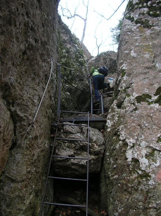gegen Ende werden die Leitern steiler, und der Platz zwischen den Felsen kleiner,