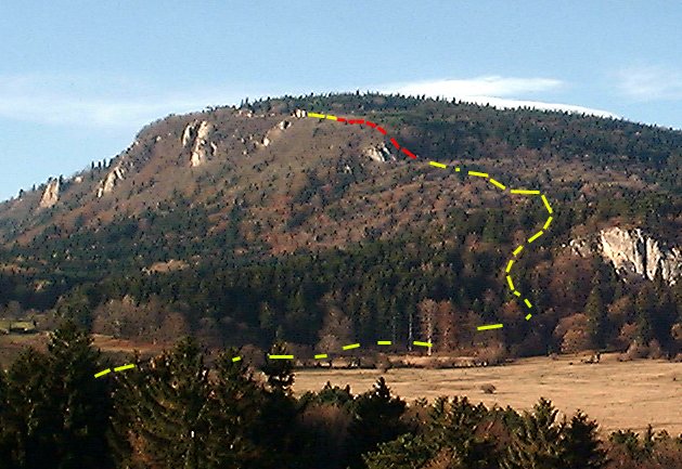 Zustieg von Dreistetten (Parkplatz beim Sportplatz), zunächst auf dem Feldweg, dann durch den Wald (rote Markierung und Wegweiser). rd. 1 Std.