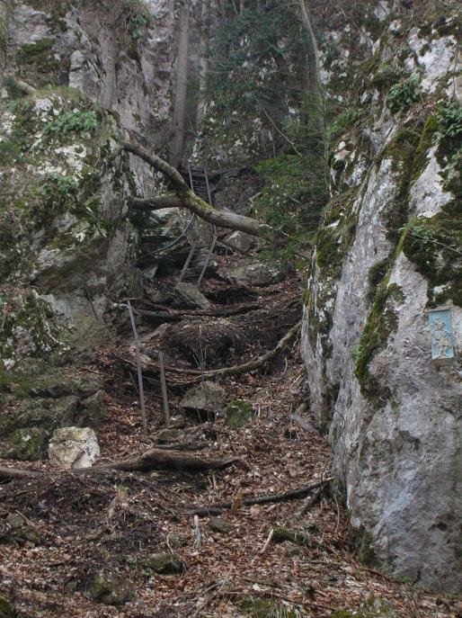 in einem netten Graben zwischen Felsen führt der Steig aufwärts. Hier am Beginn des Grabens,