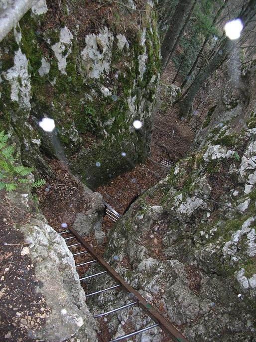 geschafft - ein Blick zurück auf die zahlreichen Leitern in der Felsenklamm,