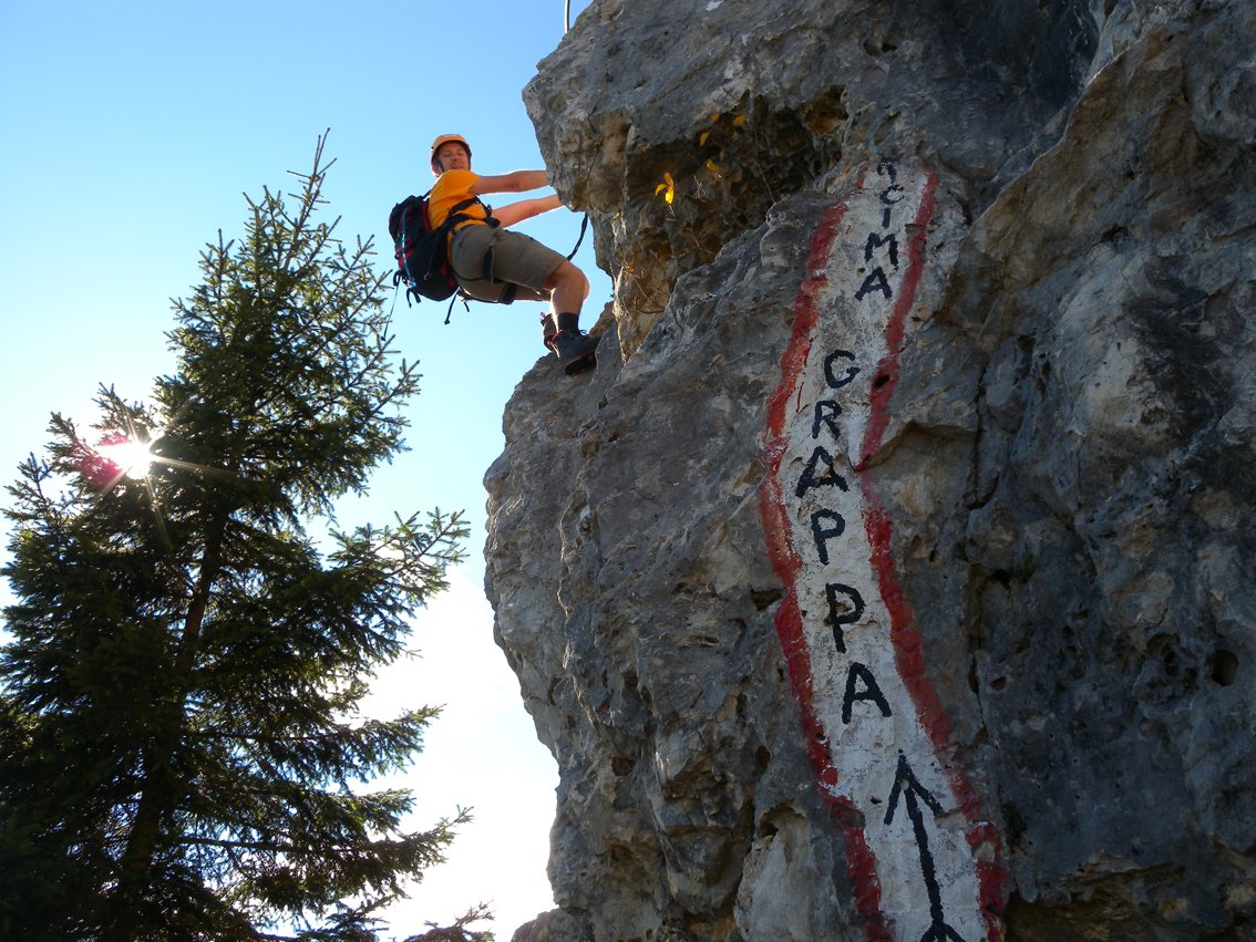 Kombination mit (Teilen) der Ferrata Sass Brusai (besser zuerst Ferrata Sass Brusai und den oberen schönen Teil der Ferrata Carlo Guzzella):