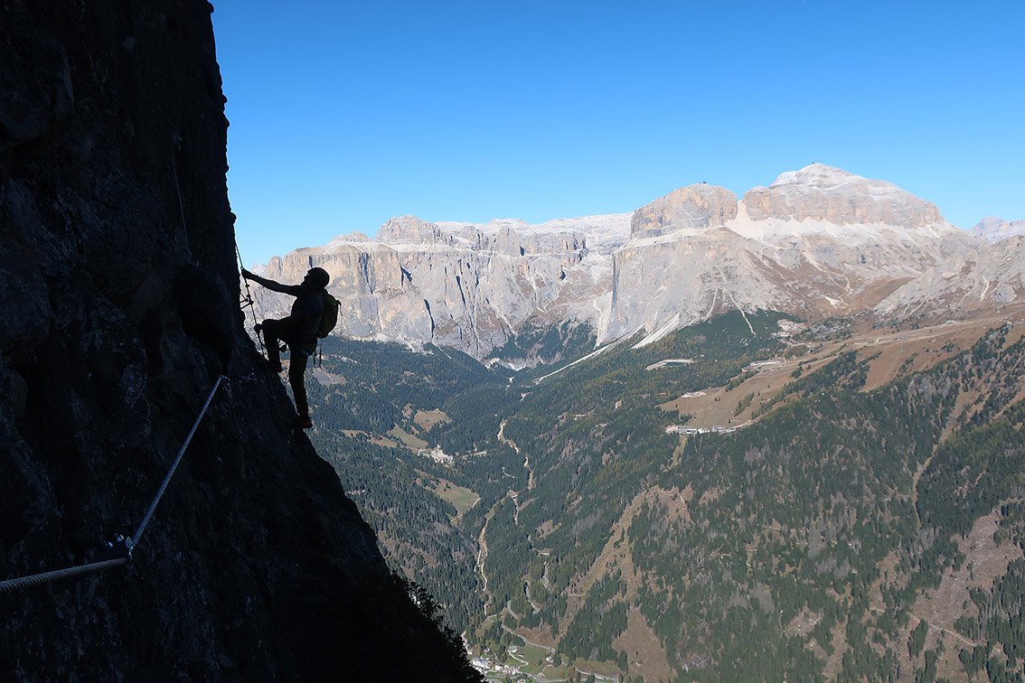 Bei Nässe ist dieser Klettersteig nicht zu empfehlen. Bei viel Andrang im Sommer ist Staubbildung vorprogrammiert, da man an der langen Querung nicht gut überholen kann. Wer es ruhig haben will, kommt Anfang/Mitte Oktober und geht zu Fuß von Alba hinauf (ca. 1000 Hm).