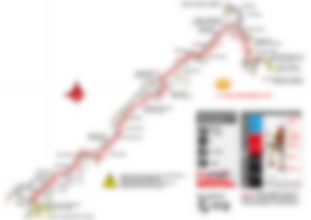 Siehe Topo. Die Ferrata folgt primär dem Nordwestgrat (Stufen bis max. D, oft C/D und C) und endet kurz unterhalb des Gipfels des Corno di Grevo. Am Ende klettert man noch 10-15 Minuten (markiert) auf dem griffigen und nicht so ausgesetzten Grat zum Gipfel (dieses Stück muss auch wieder abgeklettert werden).