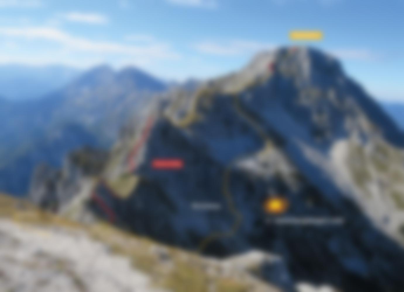 Anmerkung: Kurz oberhalb der Natteriegelscharte (Richung Natteriegel) zweigt rechts ein unmerkierter Weg (vereinzelt Steinmänner) ab, auf dem sich der Gipfel des Natterriegels umgehen lässt. Dieser Weg erfordert hohe Trittsicherheit und Kletterkönnen bis 1- im Schroffengelände.