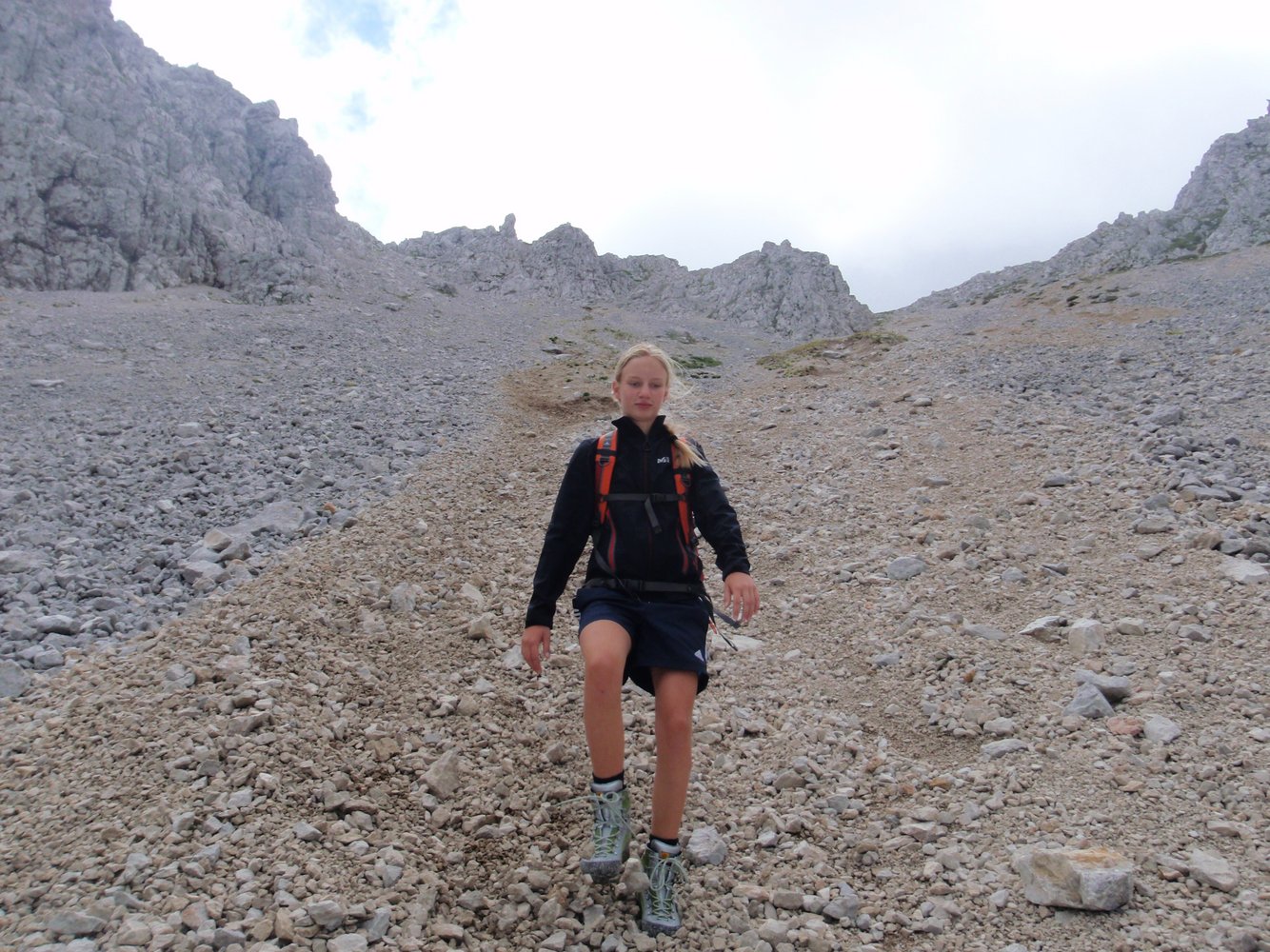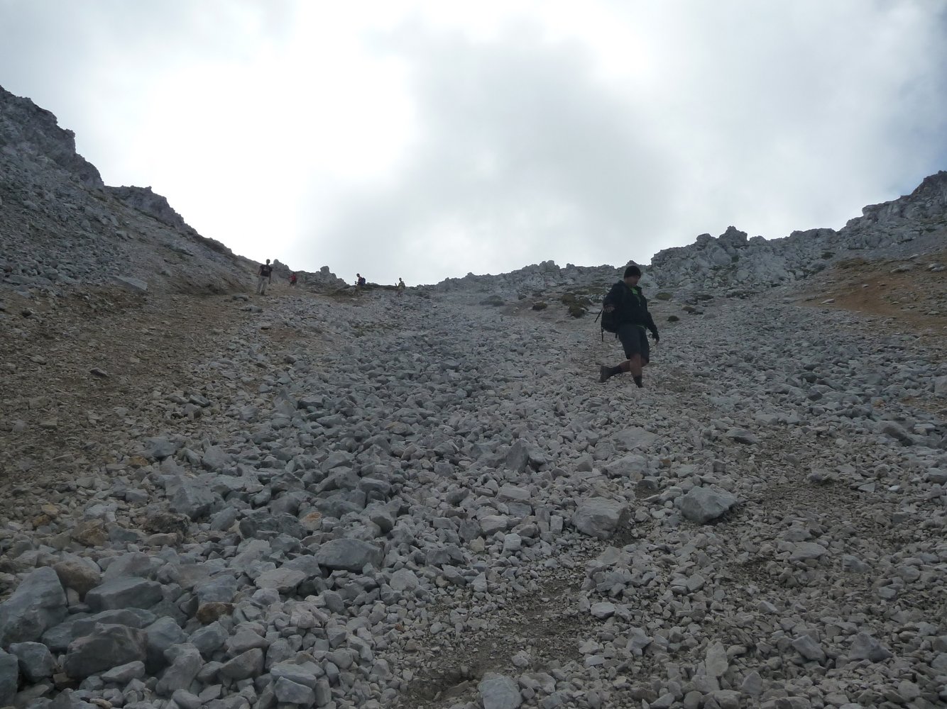Beim Zustieg quert man eine breite Geröllhalde.,