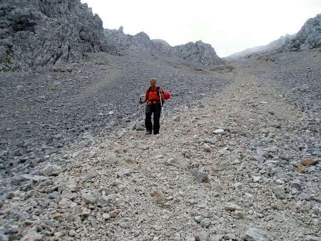 Zustieg, Beim Zustieg quert man eine breite Geröllhalde., Foto: Dieter Wissekal
