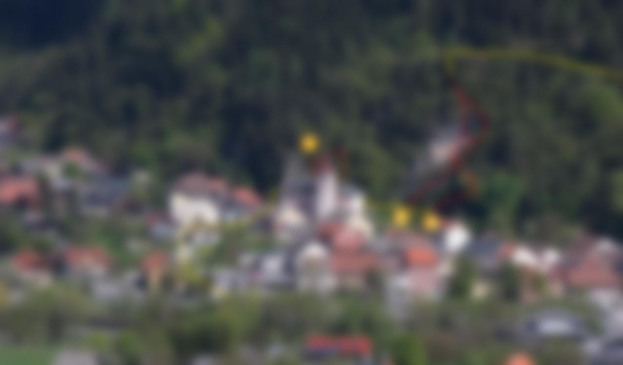 Vom Ausstieg der rechten Klettersteige auf dem Forstweg nach rechts zurück in den Ort und durch den Ort wieder zum Parkplatz.