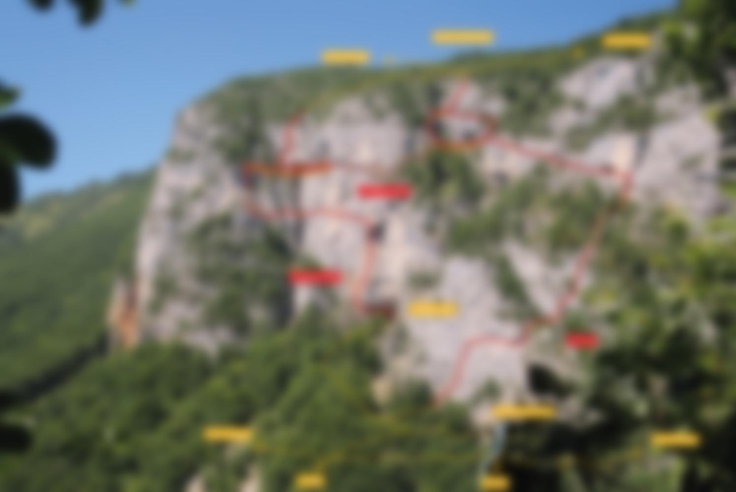 Schöner und 450 Meter langer Klettersteig auf den Roche de Charvetan bei dem lange Querungen dominieren. Im oberen Teil bei der Brücke sind zwei Varianten möglich.