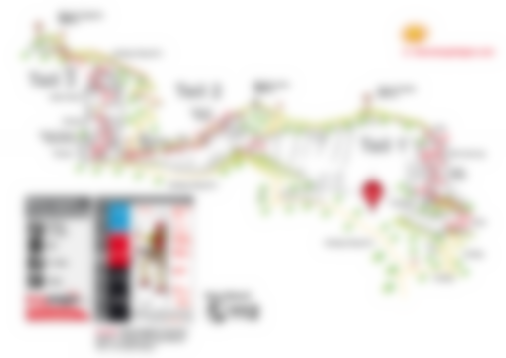 Vom Gipfel nordseitig auf dem parallel zum Klettersteig verlaufenden Wanderweg (einige Stellen sind mit Stahlseil gesichert) wieder in den Sattel vor Teil 3. Dort hinunter zum Weg und auf diesem links weiter. Man quert unterhalb der Felsen zurück zum schon bekannten Aufstiegsweg und steigt auf diesem hinunter nach Le Ei.