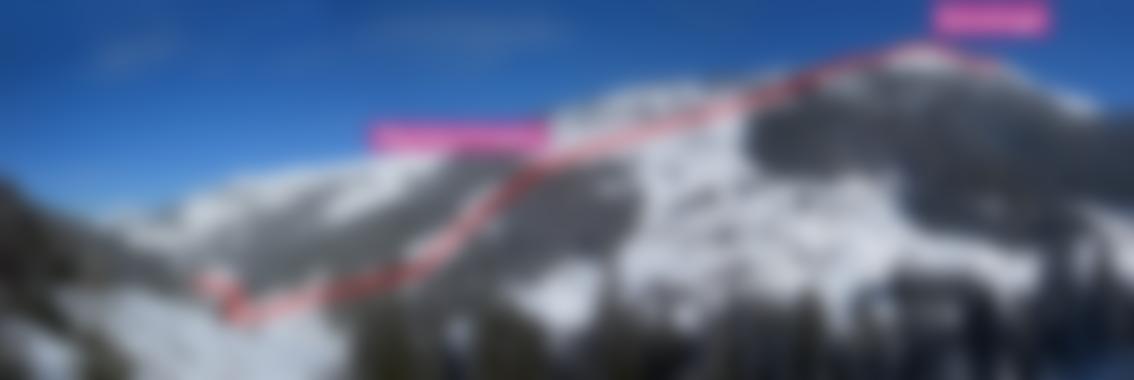Die östliche Abfahrt ist ohne Spuren nicht leicht zu finden, am sichersten fährt man auf der Aufstiegsroute (Foischingalmen) ab.