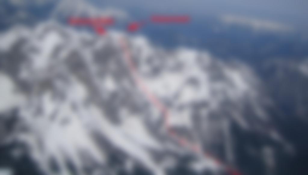 Vom Gipfel des Kaiserschilds ist der Einfahrtsbereicht der Roten Rinne gut einzusehen. Wegen der Steilheit ist diese Frühjahrsskitour nur für erfahrene Skialpinisten geeingnet!