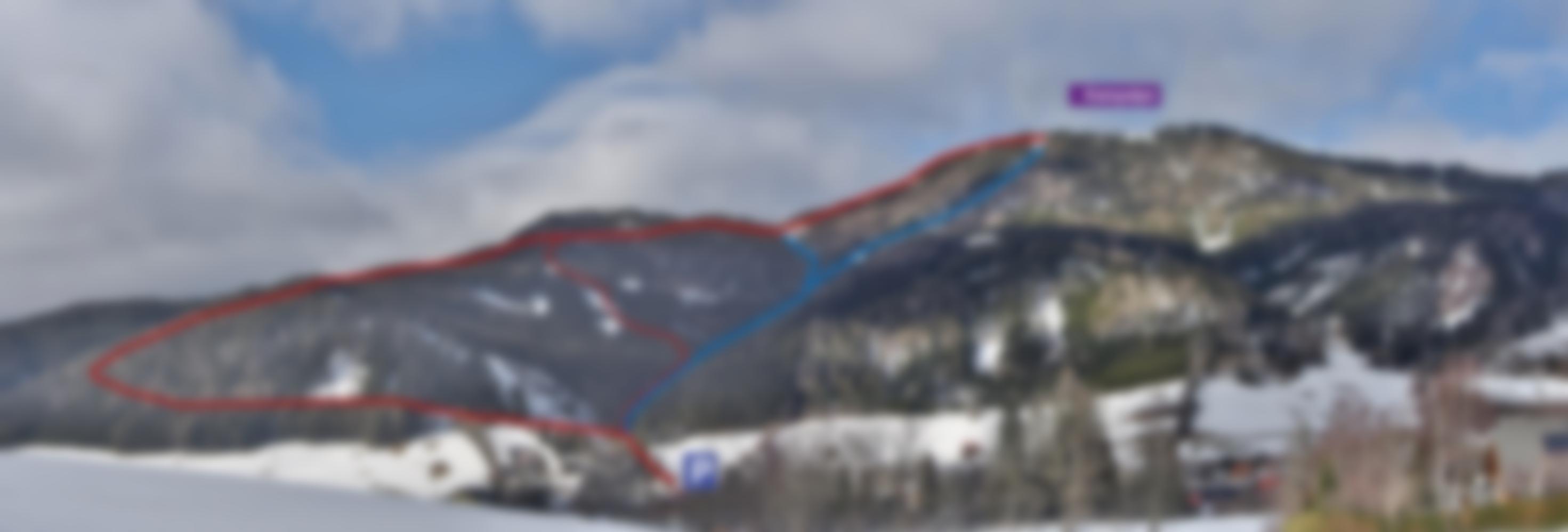Südseitige Skitour von Spital am Semmering mit einem schönen Normalaufstieg, optional steilen Abfahrtsrinnen und Blick auf das Skigebiet Stuhleck. Diese Skitour lässt sich auch perfekt mit der Bahn erreichen.
