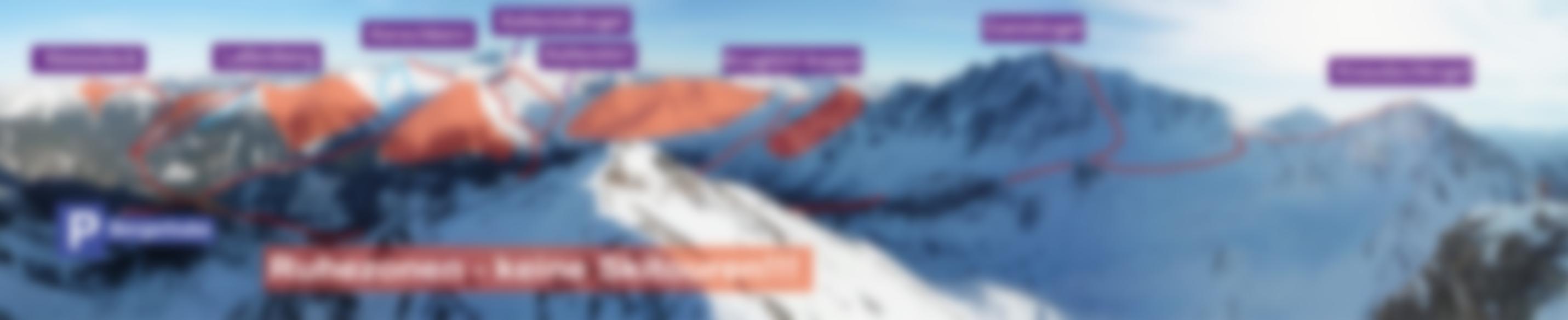 b) links über die nach oben hin steiler werdende Westflanke hinauf bis zum Grat in einem flachen Sattel (Skidepot) und zu Fuß über den Nordwestgrat noch 150 Hm zum Gipfel.