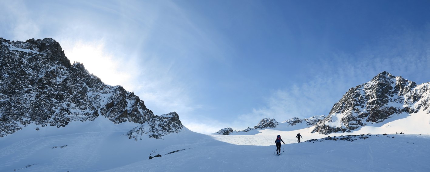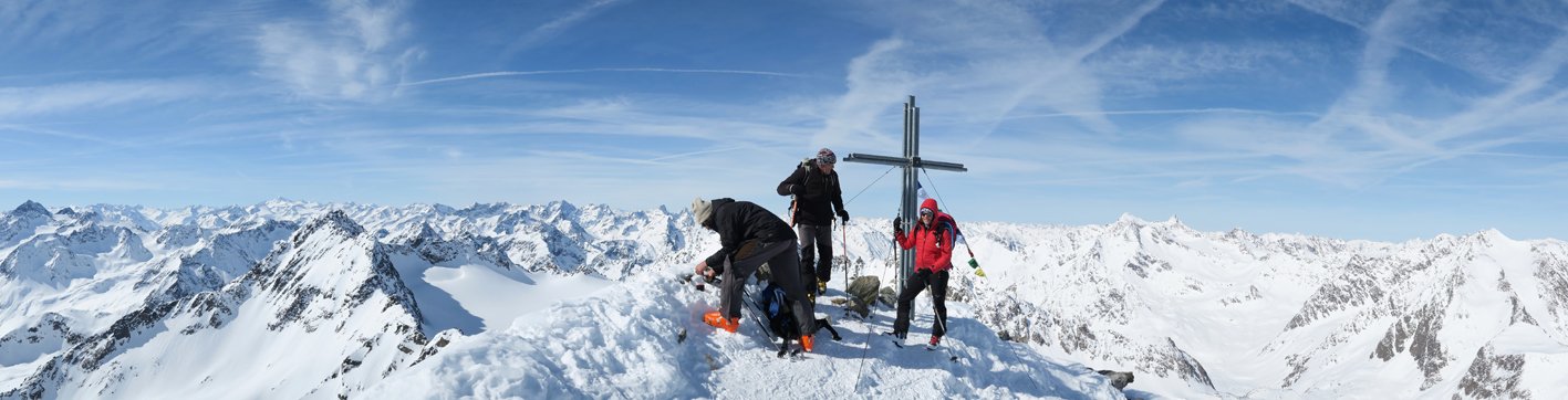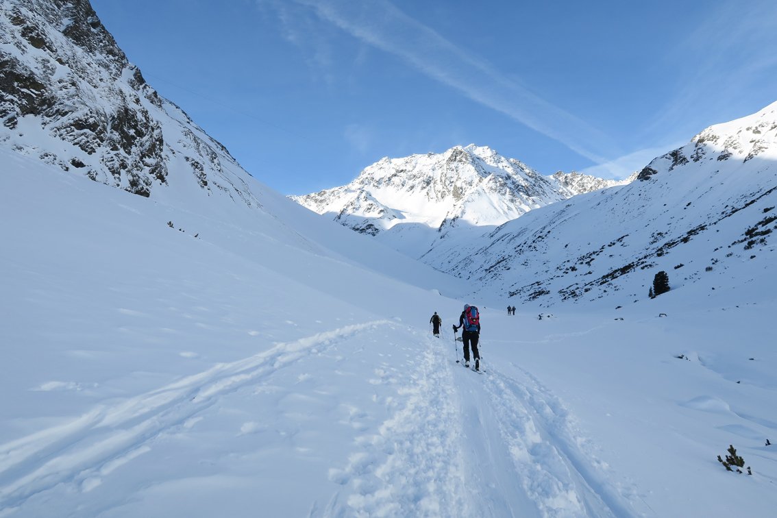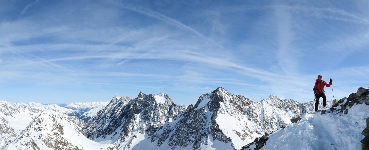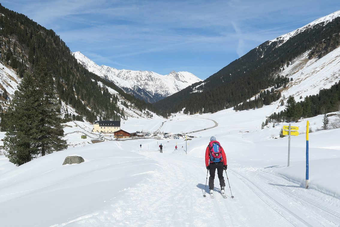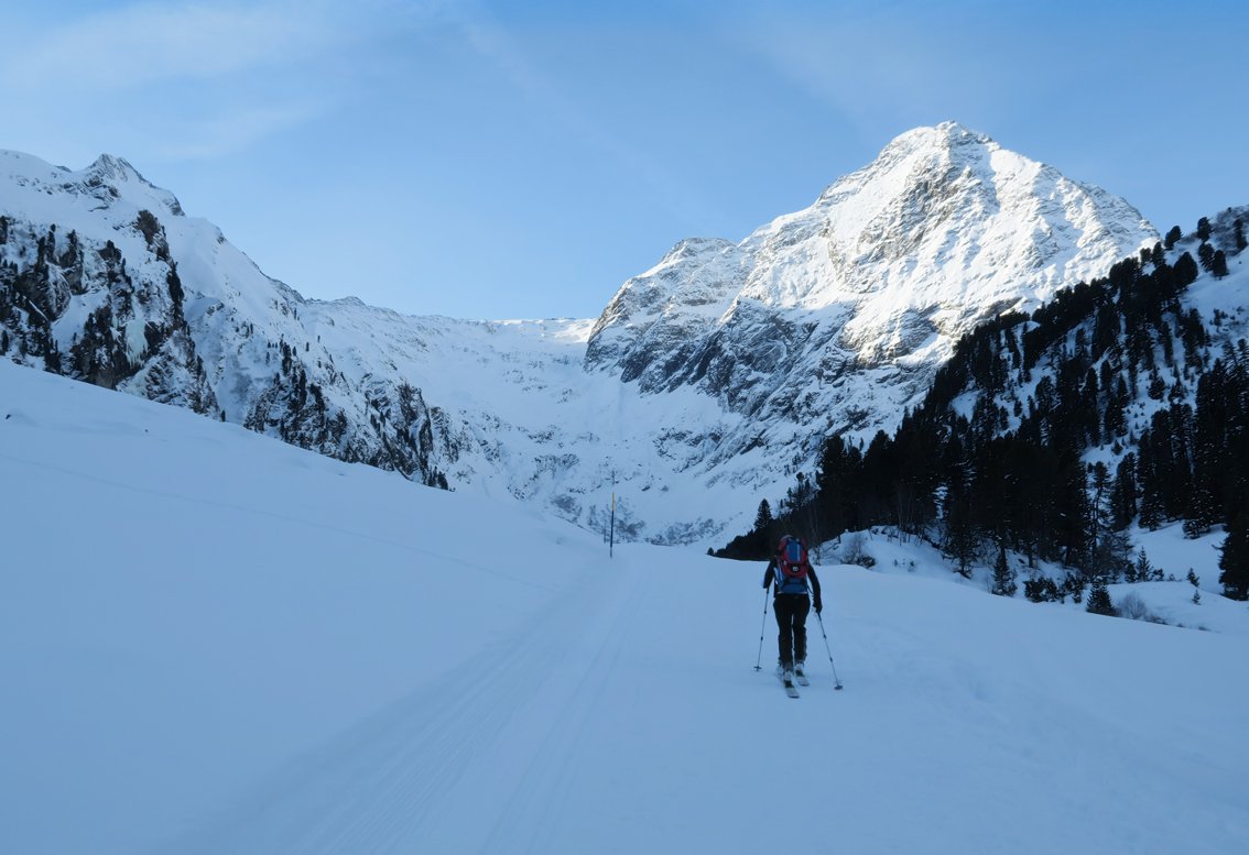 Der Längentaler Weißer Kogel ist eine der beliebtesten längeren Touren vom Gasthof Lüsens aus. Die Tour hat bis auf den kurzen, steileren Gipfelhang keine nennenswerten Schwierigkeiten und ist wie der Namen des Tals (Längental) schon sagt, sehr lang und oft auch flach. Bis in den Karboden unterhalb des Westfalenhauses hat man auch sehr schöne Abfahrtshänge. Für eine gewaltig Länge (10 Km und 1585 HM) aber eine eher leichte Skitour in einer perfekten Berglandschaft.