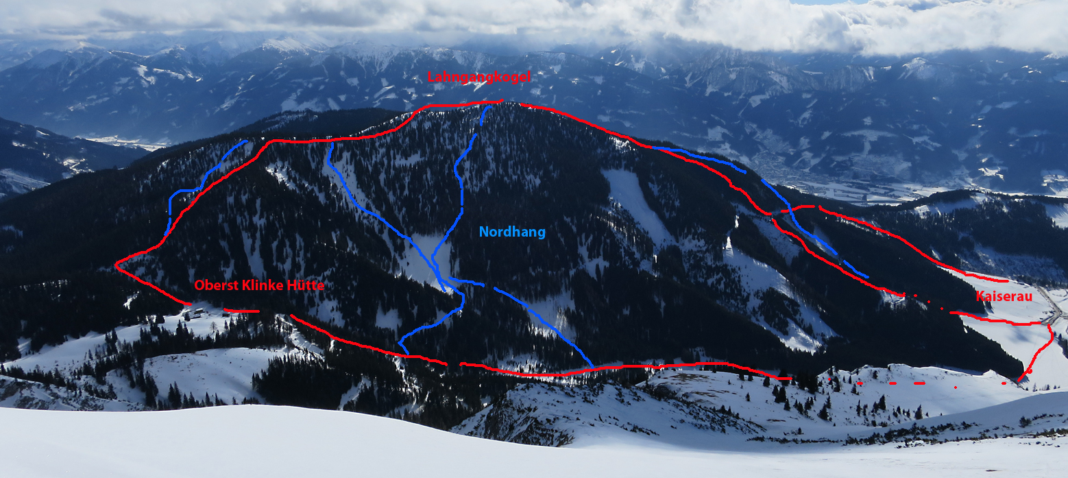 Direktester Auf- und Abstieg auf den Skitourenklassier über der Kaiserau. Schöner Skitouren-Aufstieg über Gratrücken und sehr steile Skiabfahrt durch die Nordseite. Perfekt bei gutem Powder!