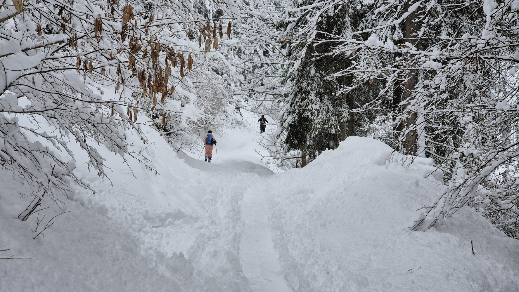 Diese Skitour geht auch gut bei wenig Schnee. Evtl. ist der Aufstieg im Graben dann aber eisig.