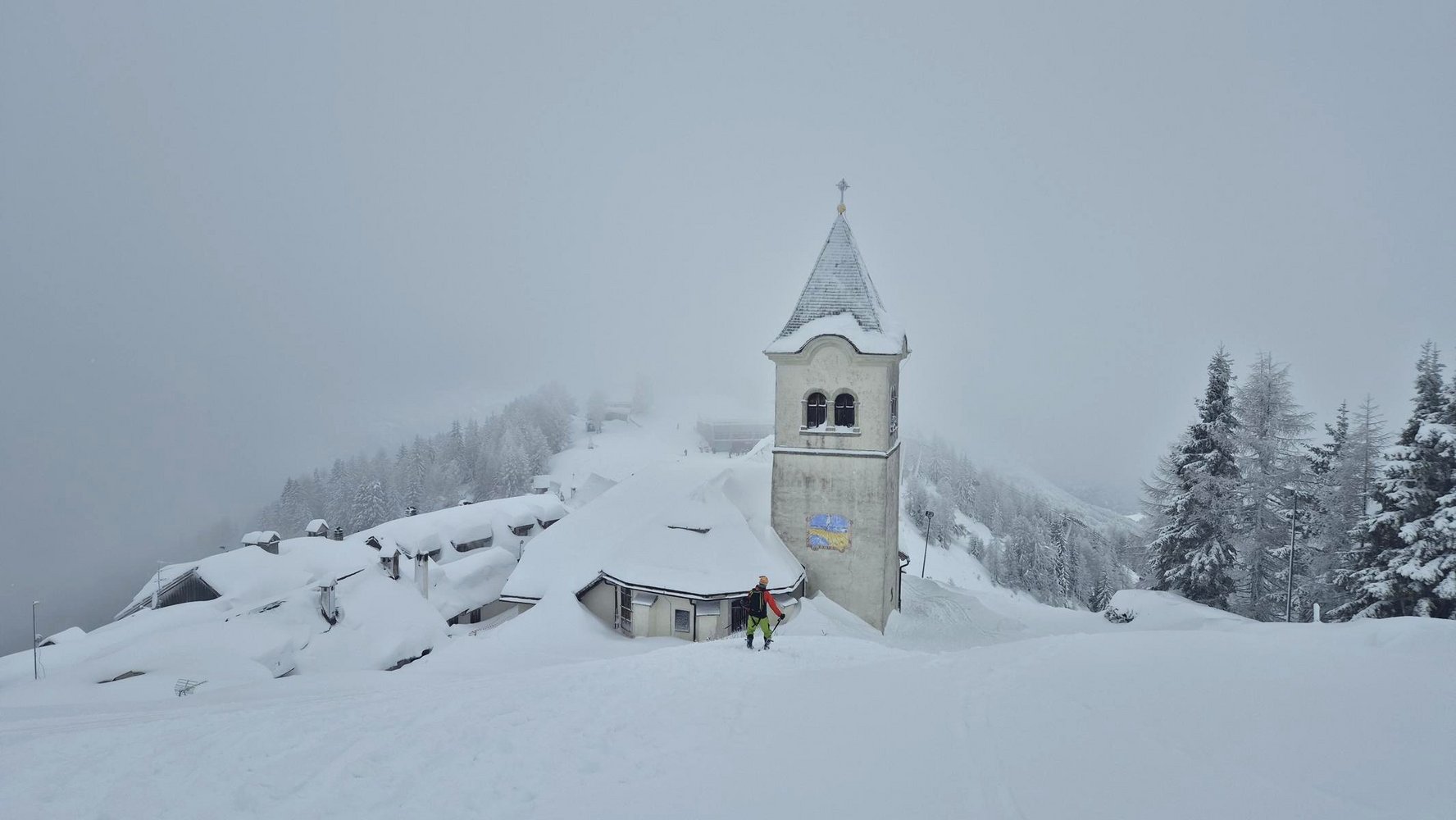 Nicht mit den Skiern in den Ort Lussari hineinfahren, sondern davor abschnallen! In Italien gelten sehr strenge Regeln für das Skitourengehen und die Ausrüstung. Bei dieser grenznahen Skitour wird gerne kontrolliert. Mehr zu Skitouren und Recht in Italien: https://www.bergsteigen.com/news/neuigkeiten/skitouren-in-italien-und-recht/