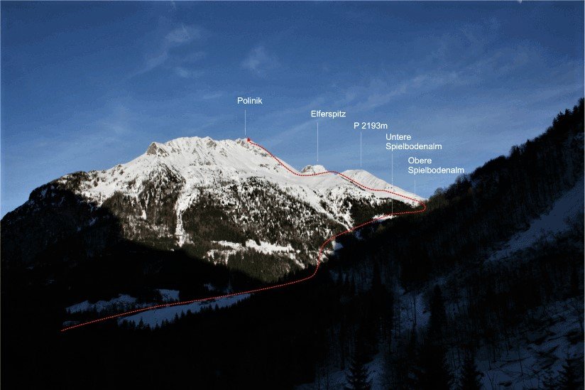 Die Skitour auf den Polinik ist etwas feines. Zum einen ist man von einer gewaltigen Bergkulisse umgeben, zum anderen bietet die Tour herrliches Terrain zum Abfahren. Gerade der obere, baumfreie Teil lädt zum „richtig Gas geben“ ein. Wer noch Lust verspürt, kann nach der Abfahrt vom Polinik auch den „Elferspitz“ mitnehmen, denn dieser zwingt einen regelrecht, auch noch zu besteigen. Wer dies nicht glaubt, sollte sich einfach die Photos ansehen und etwas Gegenteiliges behaupten!