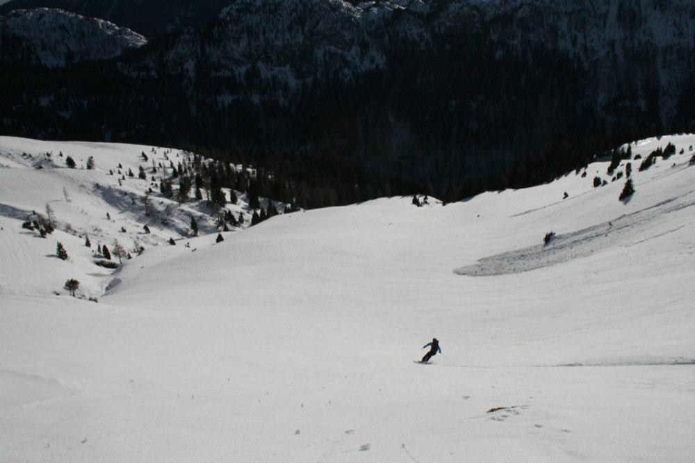 ABFAHRT: Wie Aufstieg bzw. bei wenig Schnee im Frühjahr ab knapp unter der „Oberen Spielbodenalm“ über die Forststrasse abfahren.