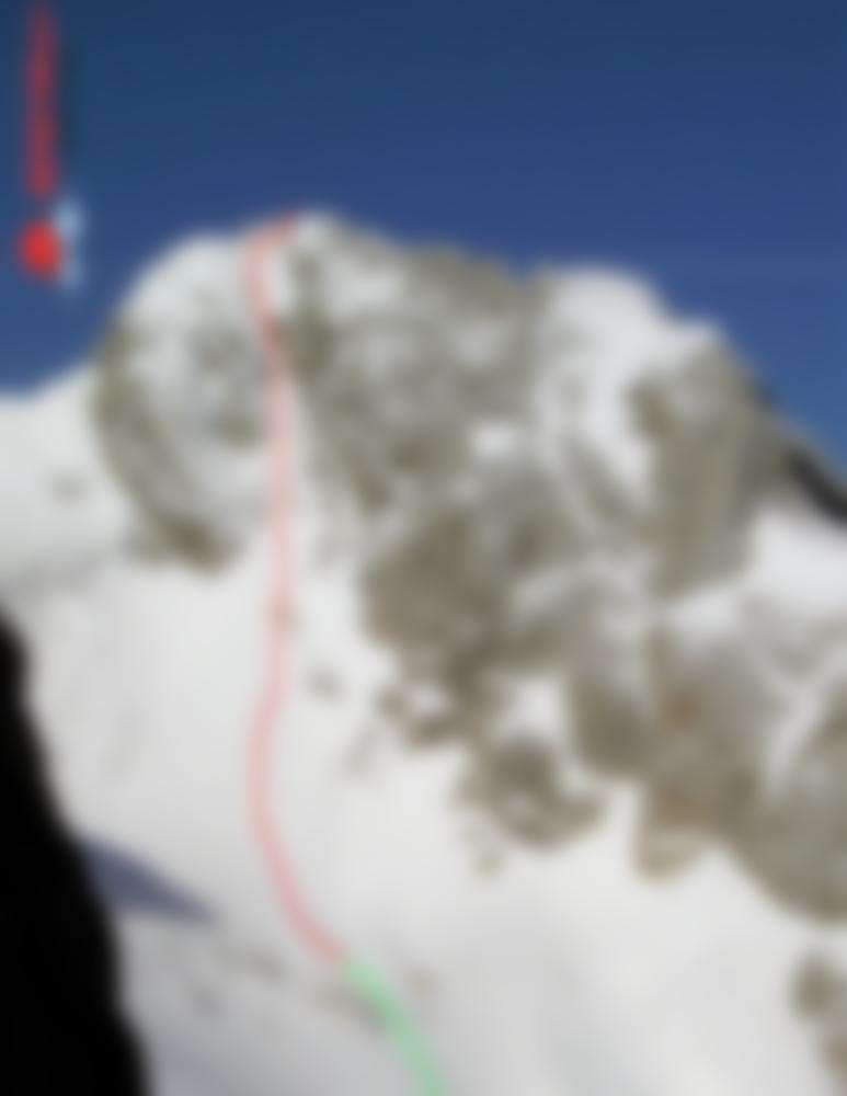 Eine der steilsten Abfahrten im Dachsteinmassiv (55°) im Bereich des Gosaugletschers (300 HM). Besonders lohnend in Verbindung mit einer anschließenden Besteigung des Hohen Dachteins ( 2.996 m).