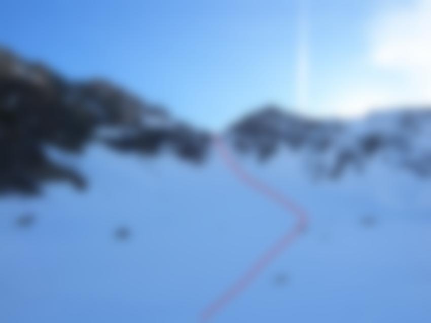 Sehr steile Hänge auf dem gesamten Anstieg, d.h. hohe Lawinengefahr - nur bei sicheren Schneeverhältnissen machbar.